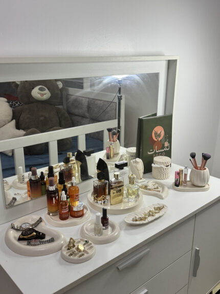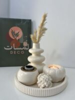 يتكوّن من صينية دائرية، حامل شمعة، مبخرة وفاز تصميم هادئ يناسب جميع أنماط الديكور 🕯️🌾